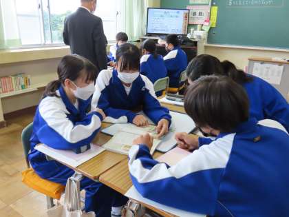 写真は、奈良時代の税について考える1年生の皆さん。
