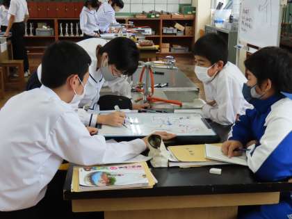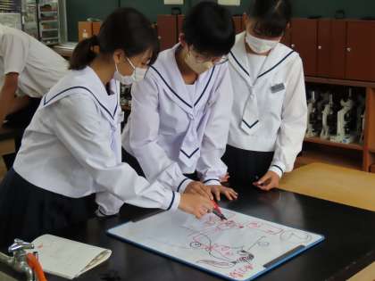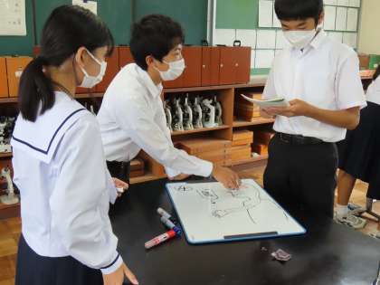 写真は、体の動きを神経と関連付けて説明しようと考えている様子。