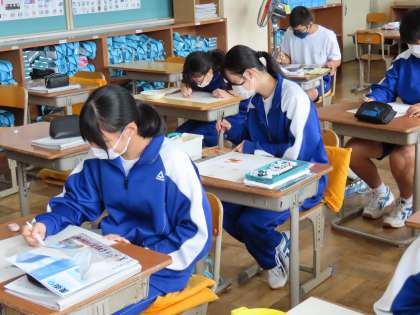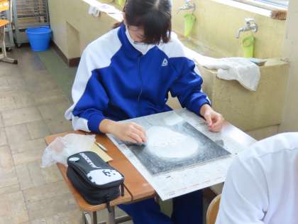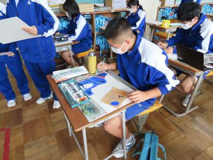 自画像制作に取り組んでいる3年生ですが、様々な技法を用いて、個性的な作品を作っています。どんな作品になるかは、完成してのお楽しみです。