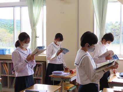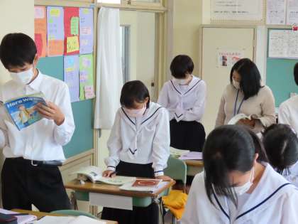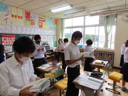 写真は、ポイントに気を付けながら発音する2年生の皆さん。
