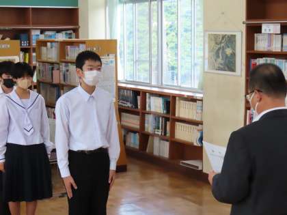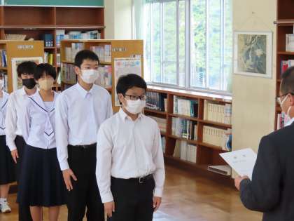 いよいよ令和4年度の後期が始まります。後期生徒会本部役員の皆さんと、各学級の学級委員長に校長先生より辞令を渡していただきました。