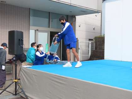 写真上、中:ステージの準備や片づけをするボランティアの生徒。