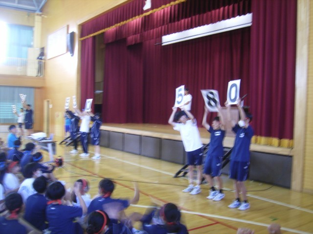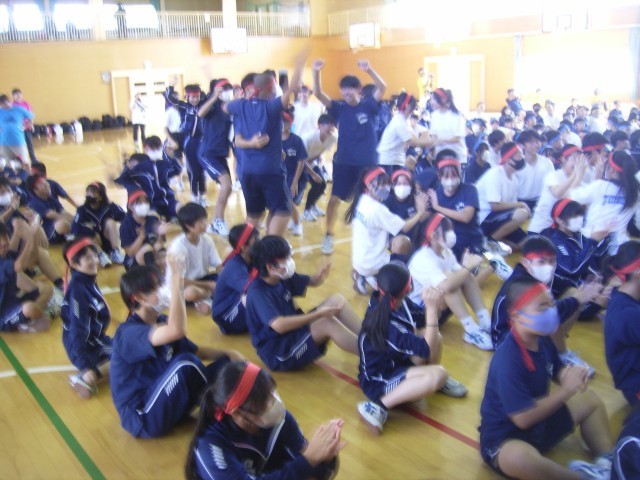 全種目が終了し、体育館で閉会式及び青嶺祭エンディングセレモニーです。総合優勝は、赤カラーでした。青と黄は同点で、ともに準優勝となりました。仲間との絆をしっかりと深めることができた青嶺祭となりました。
