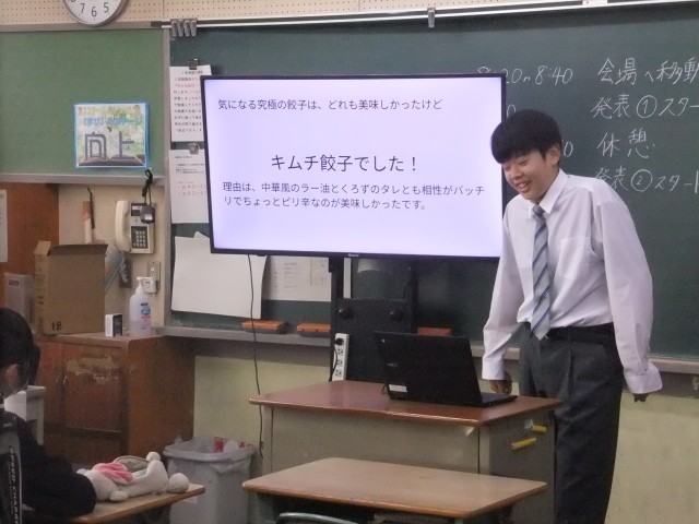 昨日は防災学習、今日は自分の興味のあることを調べ、その発表です。