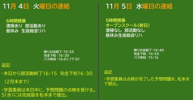 11月4日(火)・5日(水)の予定