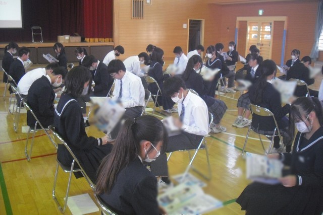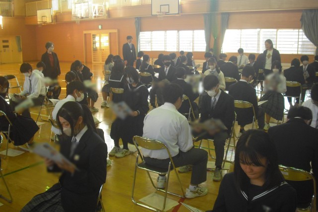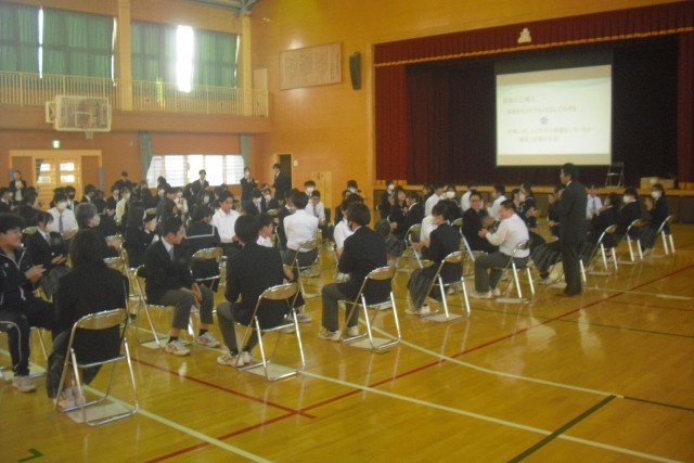 2学期の期末テストが終わり、いよいよ進路選択のときが近づいてきました。進路選択後は、受験になります。受験では、たいてい、面接が用意されています。高校の先生を招き、面接でどのようなことに注意したらよいか、アドバイスをいただきました。面接には日頃の生活の様子があらわれます。3年生にとって気の引き締まる時間となりました。