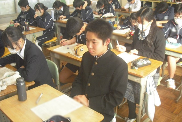来週からは、三者教育相談がスタートします。中学卒業後の進路について、選択するときが近づいています。今日は、自分が志願する進路希望先について、思いをまとめています。どうして志願するようになったのか、どのようなことを頑張りたいかなど、自分の将来について、一人ひとりがしっかりとみつめて考えています。