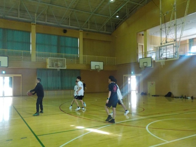 冬休みに入りました。生徒たちのいない学校は、やはりさみしいものですが、体育館では歓声が!!?行ってみると、男子バスケットボール部VS TOMIOKA TEACERSの試合が開催されていました!勝負の行方ははいかに!!?