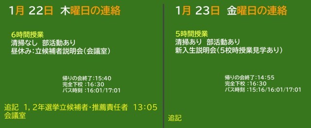 1月22日(木)・23日(金)の予定