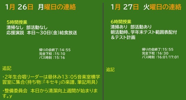 1月26日(月)・27日(火)の予定