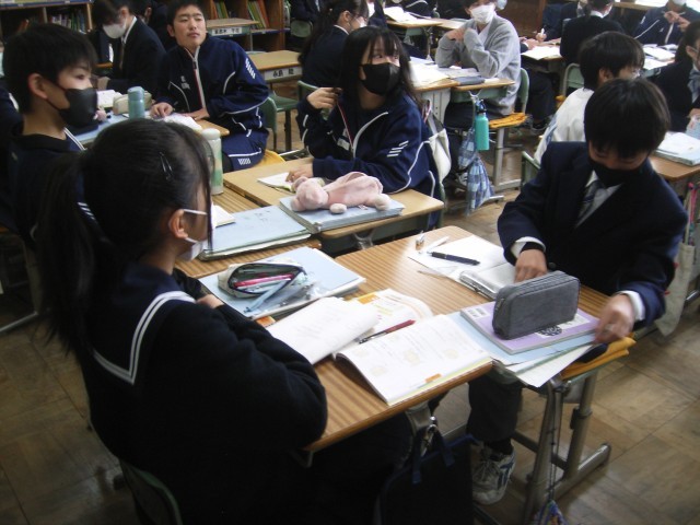 立体の表面積について学習しています。円柱の表面積をどのようにしたら求められるか、考えていました。公式が出てきましたが、その意味について話し合いがなされていました。