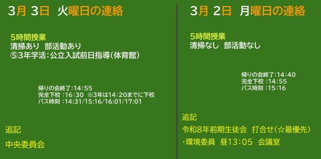 3月2日(月)・3日(火)の予定
