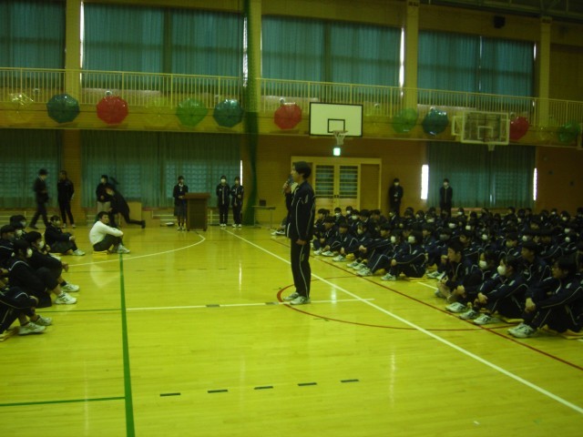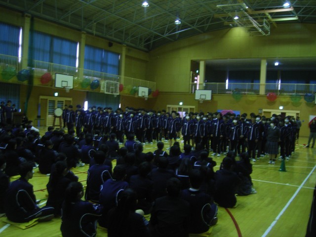 生徒会及び1・2年生の学年推進委員が中心となって、3年生を送る会が開催されました。3年生への感謝を示すために、1・2年生が知恵を振り絞り、時間をかけて自分たちで準備をしてきました。会場に入ると、工夫を凝らした装飾にまずは驚かされます。また、思い出を振り返るビデオや劇、クイズなど、よく考えられていました。3年生も1・2年生の思いを十分に感じることができました。非常に温かい雰囲気が流れるとても素晴らしい会でした。
