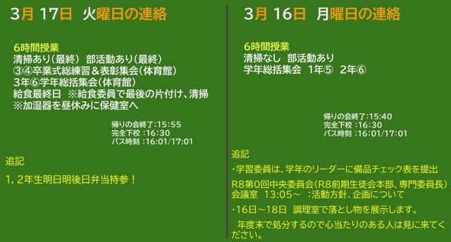 3月16日(月)・17日(火)の予定