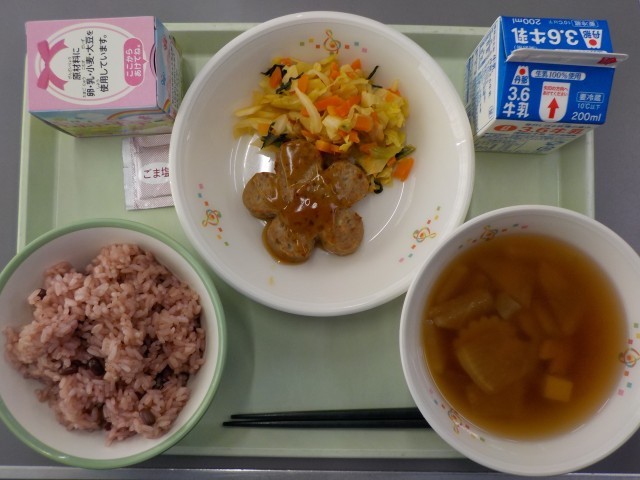 さあ、今日はお祝い献立だ。お祝いということで、たいてい赤飯が出るが、給食の赤飯がまたうまい。もっちもちのお米にごま塩がよく合う。赤飯の赤は、大豆から出されているが、その大豆も入っていてうれしい。赤飯の甘さにごま塩のしっかりとしたしょっぱさがたまらん!!
