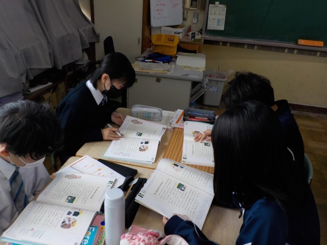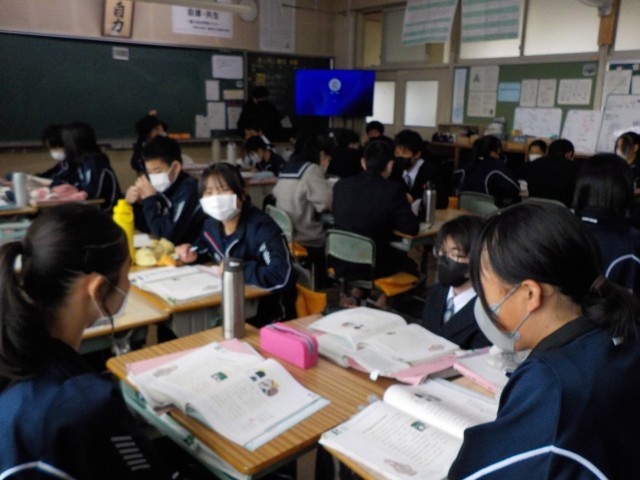 1年生の数学と英語の様子です。学び合いのスタイルがこの1年間で格段に定着していきました。さらなる学力アップをめざして新年度もがんばりましょう!!