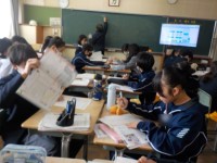 下校時刻が小学生と中学生が重なり、バスで帰宅する子どもがいっぱいになったところ、中学生10数名が小学生を先に乗せてくれたとのこと。中学生たちは1本後のバスに乗車したそうです。