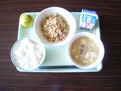 ご飯 牛乳 かつおそぼろ さつまいものみそ汁 みかん でした。