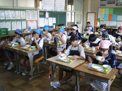 今日は、ふるさと給食の日です。静岡県産のゆら早生みかんが出ました。早生みかんは、収穫時期が10〜11月の早い時期に収穫を迎えるみかんです。ゆら早生みかんの特徴は、見た目は青くても、中身は熟していて、とてもジューシーな果汁がたっぷりです。外側の皮は薄く、さわやかな酸味とほかの早生みかんに比べて甘みとコクがあり、味のバランスがとれたみかんです。秋の味覚を楽しんでください。