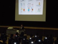 学校医の先生による薬学講座が開かれました。薬をお茶で飲むとどうなるかの実験はイン...