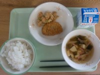 ごはん牛乳黒はんぺんフライじゃがいものそぼろ煮若竹汁 今日は『ふるさと給食の日』...