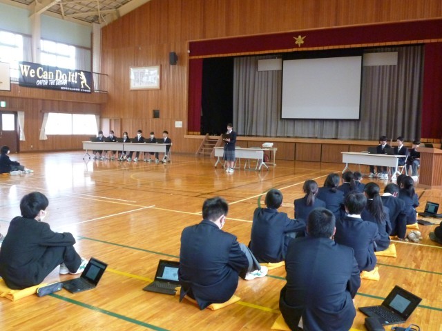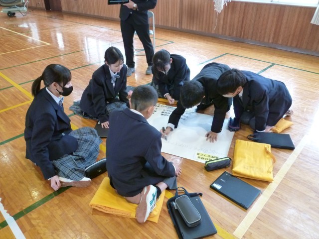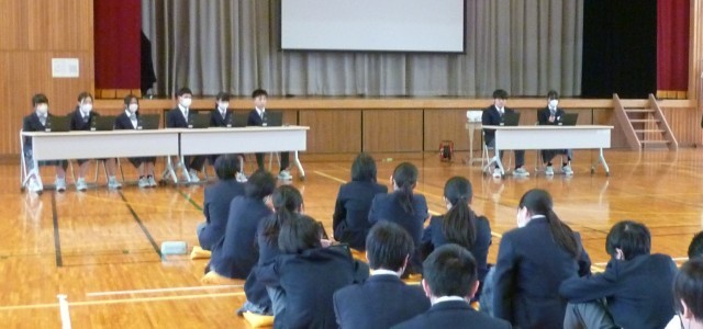 12日、後期生徒総会が開かれました。第3号議案では、「全校〇〇」のみんなで取り組める〇〇を考えました。生徒たちが企画・運営する〇〇で絆をさらに強くしてほしいです。