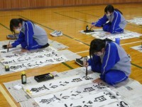 明日の向けて、在校生が体育館の会場や教室の準備をしました。