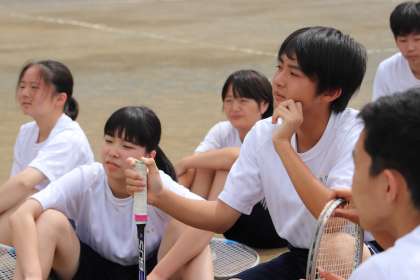 3年生の体育では、ソフトテニスに取り組んでいました。