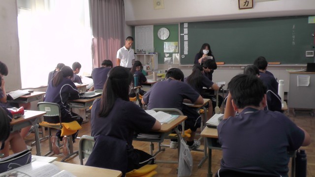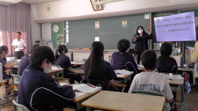 富岡中学校2年生の道徳「美しい母の顔」の授業を