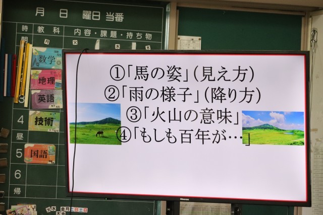 行われました。「大阿蘇」の詩を教材に、作者の伝えたかった
