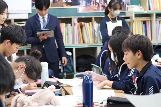 授業後、小学校の先生も交えて、よりよい授業づくりに向けた