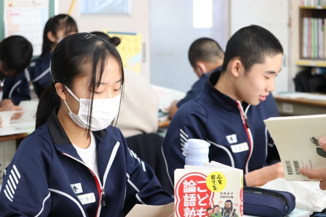 富岡中学校3年国語、「論語」の授業を参観しました。 「論語」の言葉が、生活のど...