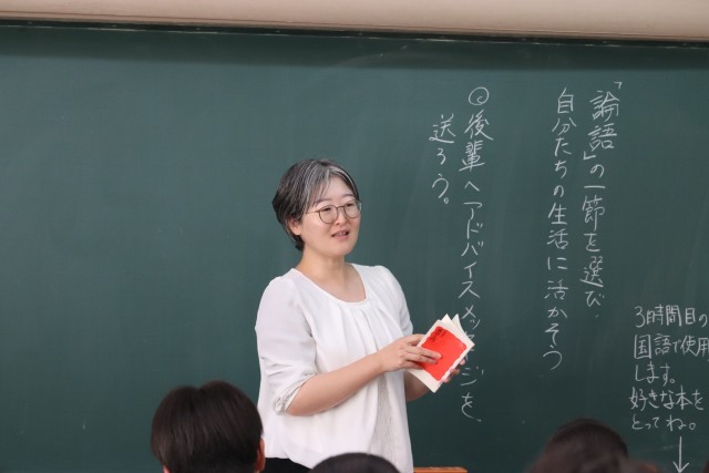 富岡中学校3年国語、「論語」の授業を参観しました。